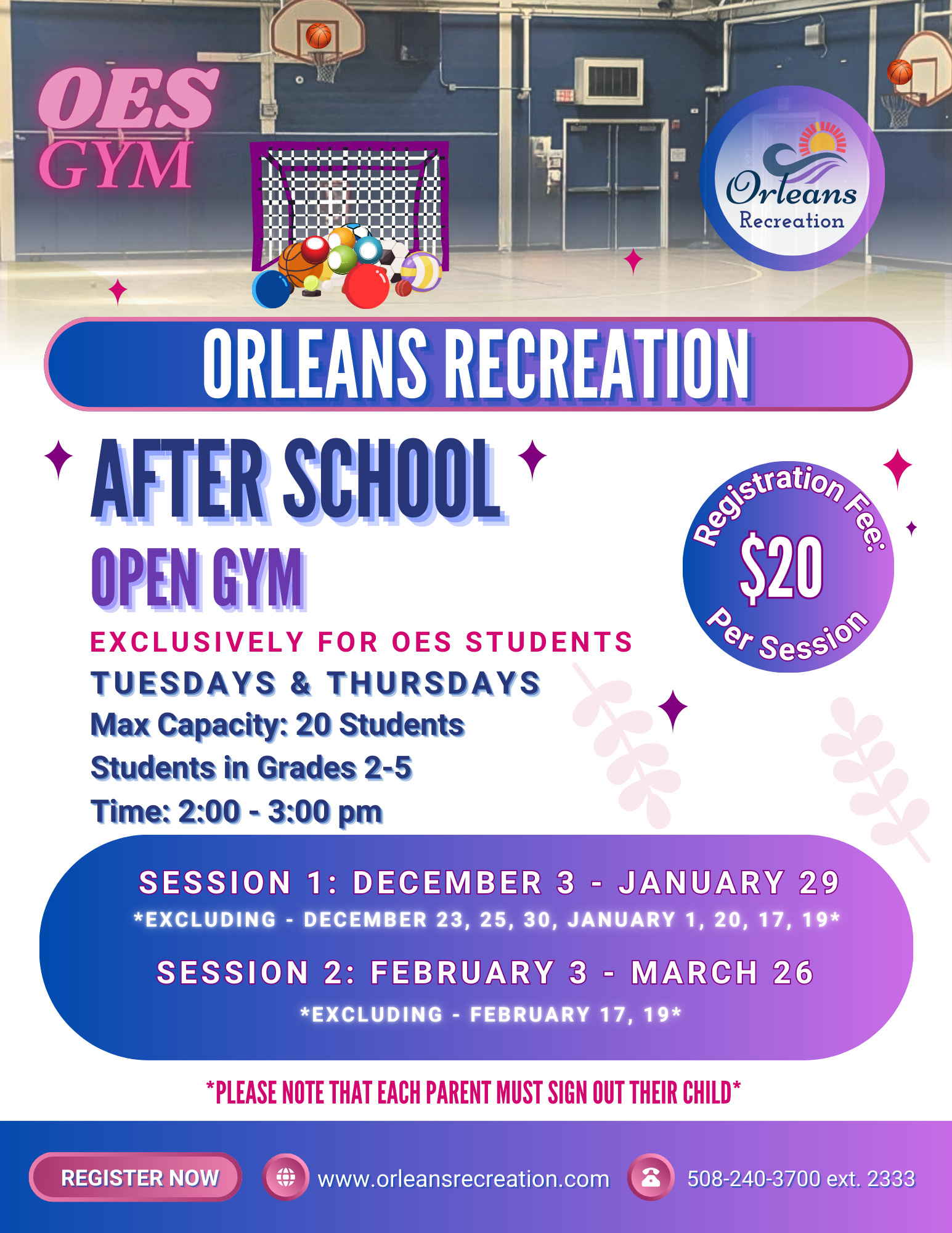 Join Orleans Rec for an exciting open gym program at Orleans Elementary School!